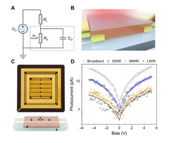 紅外光的檢測構(gòu)成了現(xiàn)代工業(yè)、科學(xué)、能源、醫(yī)療和國防應(yīng)用等多個(gè)領(lǐng)域的研究基礎(chǔ)。能夠跨越短波(SWIR)、中波(MWIR)和長波紅外 (LWIR)的光電探測技術(shù)更是受到現(xiàn)代科學(xué)研究的青睞。當(dāng)前,使用最先進(jìn)窄帶隙半導(dǎo)體的光電探測設(shè)備需要復(fù)雜的制造過程、高的制造成本和嚴(yán)格的冷卻要求,這對于其廣泛應(yīng)用來說仍面臨著巨大挑戰(zhàn)。