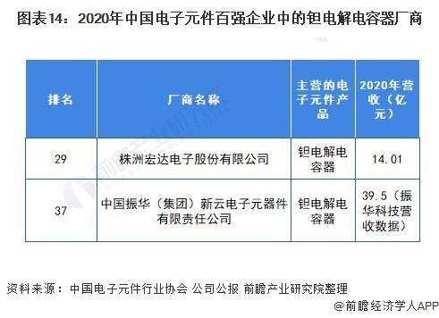 2020年中國電子元件百強企業中,3家薄膜電容器廠商入選,其中,廈門法拉電子股份有限公司排名最前(28)