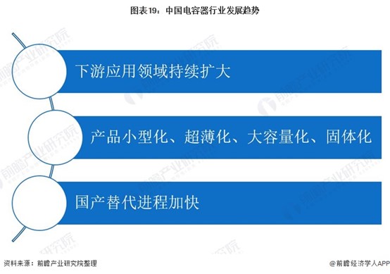 未來隨著我國消費電子、新能源、軌道交通等電容器下游應用行業的快速發展,電容器產品需求將進一步提升,產品應用范圍也將不斷擴大;同時,下游電子產品呈現小型化趨勢,推動上游電容器也朝著小型化、超薄化、大容量化、固體化等方向發展;然而當前我國高端電容器及部分原材料仍需大量進口,國產化進程迫在眉睫,隨著國內廠商生產技術不斷發展,我國電容器國產替代進程將不斷加快。