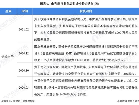電容器行業代表性企業最新投資動向