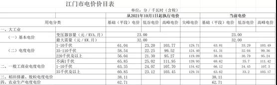 三、江門市電價變化情況