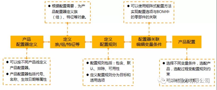 模塊化設計完成之后,可以按照之前定義的配置規則,基于產品平臺的超級BOM,定義許可的選項/選項集,定義選項之間的關系和約束,形成一系列可供市場選用的配置資源。為后續的模塊驗證與市場推廣提供有效的數據支持。