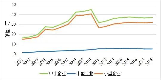 圖1 2001—2018年我國中小企業數量變化