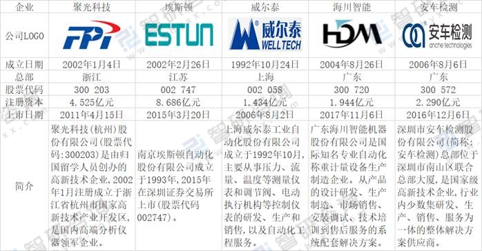聚光科技、埃斯頓、威爾泰、海川智能、安車檢測基本情況對比