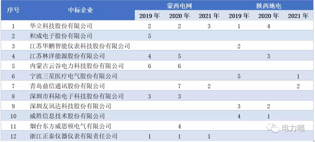 近三年共有12家企業在上述兩個地方電網中標。