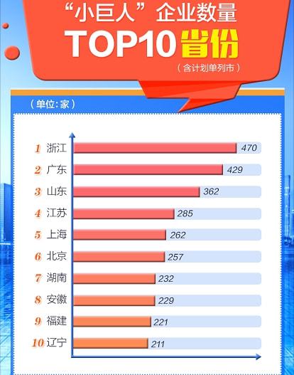 從地域分布上看,目前4762家國家級專精特新“小巨人”中,數(shù)量最多的省份前三名依次是浙江、廣東和山東,三省合計(jì)約占全國總量的四分之一;從城市維度上看,國家級專精特新“小巨人”數(shù)量排名前10名的城市分別是北京、上海、寧波、深圳、天津、重慶、成都、青島、廈門、東莞;而從整體數(shù)據(jù)看,山東、廣東、浙江的“專精特新”中小企業(yè)總量也居于前列。其中,大部分“專精特新”企業(yè)來自制造業(yè)。