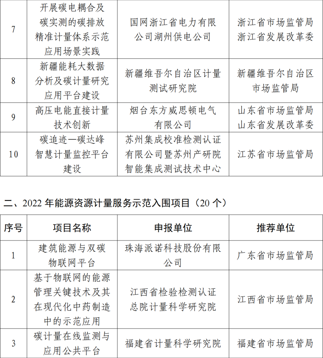 為進一步完善能源資源計量體系,促進能源資源節約和綠色發展,市場監管總局、國家發展改革委在全國范圍內聯合開展了2022年能源資源計量服務示范活動。近日,兩部門聯合印發《關于公布2022年能源資源計量服務示范項目和入圍項目名單的通知》(以下簡稱《通知》),共30個項目在列,分別是2022年度全國能源資源計量服務示范項目10個,2022年度全國能源資源計量服務示范入圍項目20個。