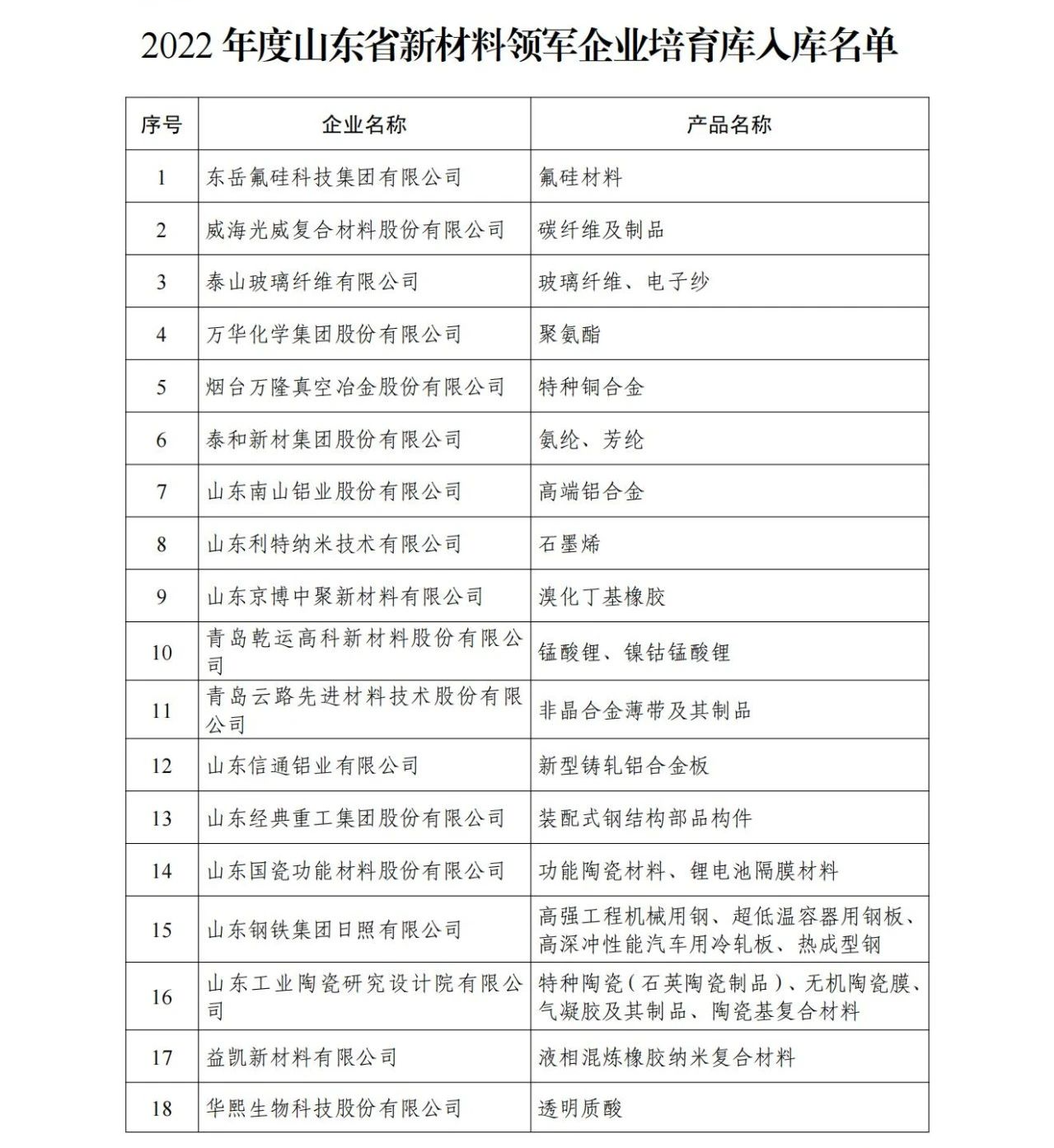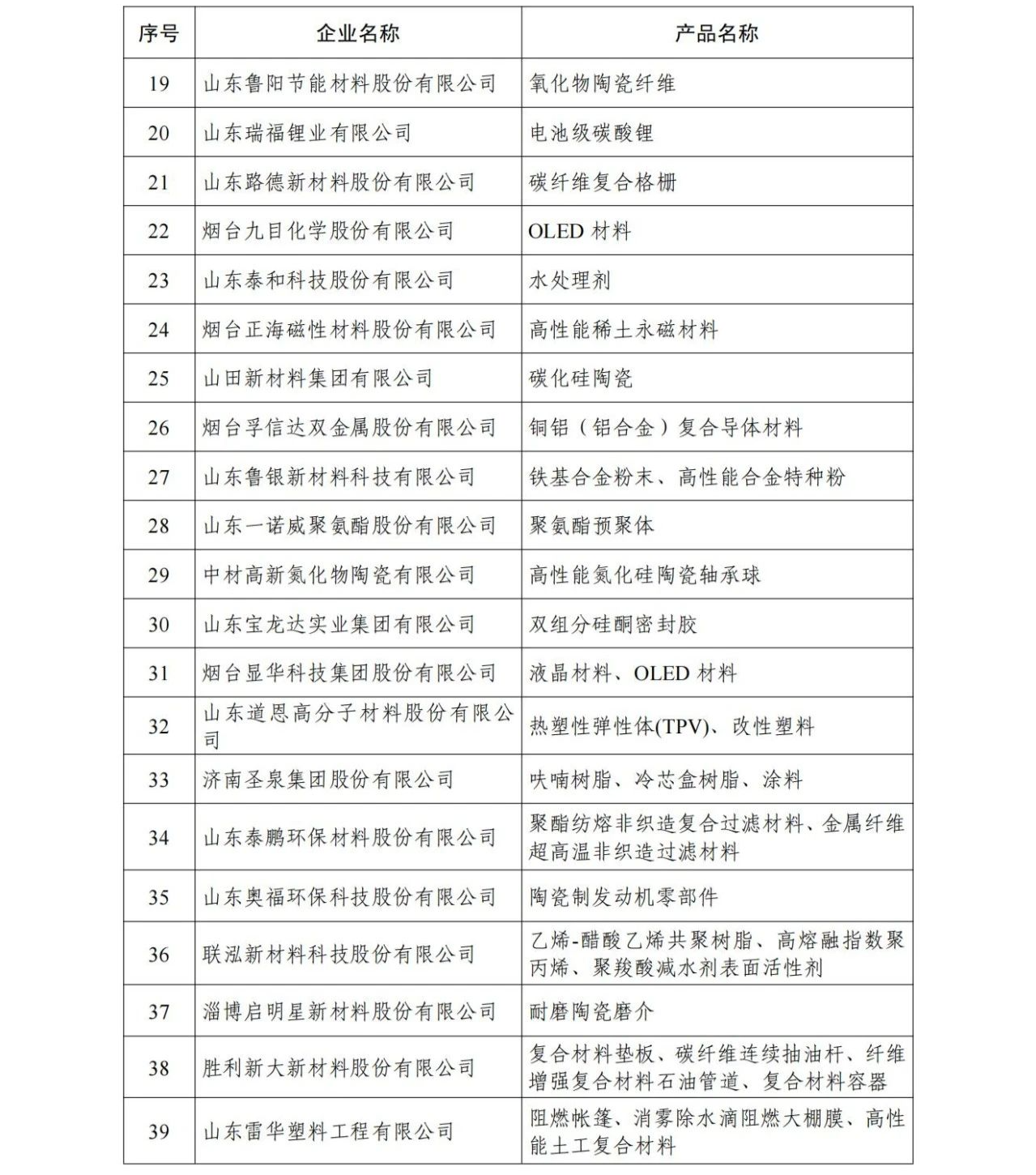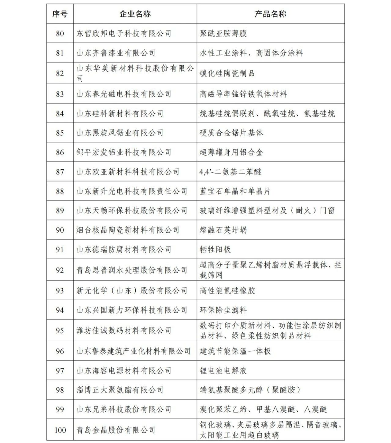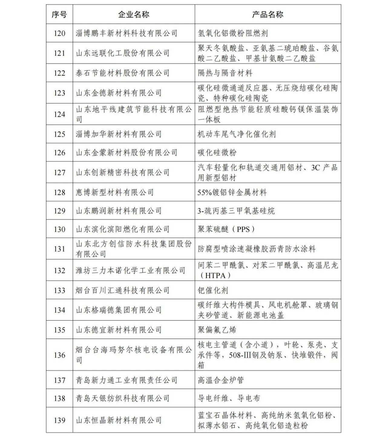 山東省新材料領軍企業50強名單出爐