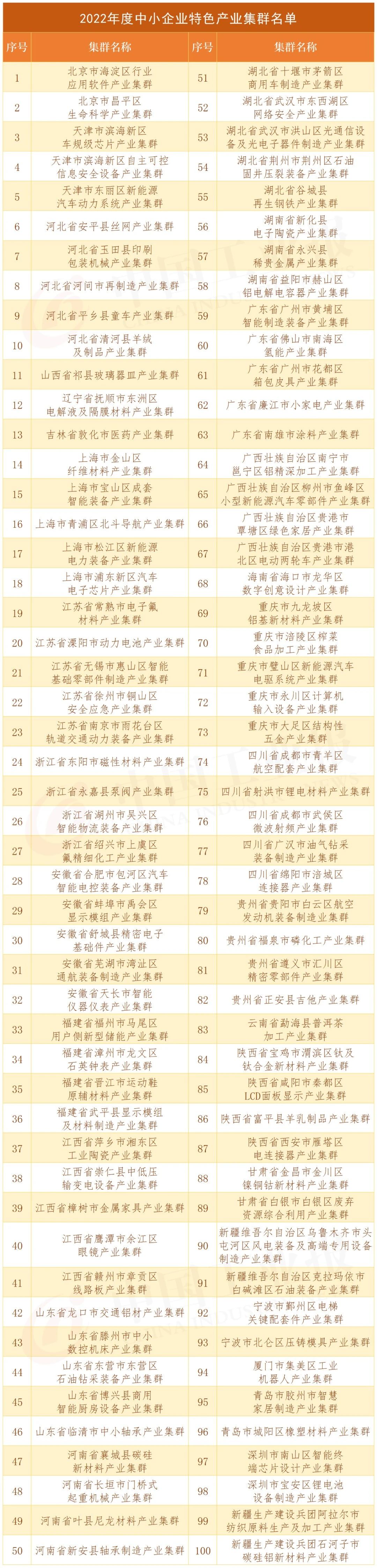 據(jù)悉,2023年,工業(yè)和信息化部還將在全國范圍內(nèi)再培育100個左右中小企業(yè)特色產(chǎn)業(yè)集群,推動各地圍繞加快數(shù)字化、綠色化轉(zhuǎn)型,提升治理和服務(wù)能力等方面加大培育力度。