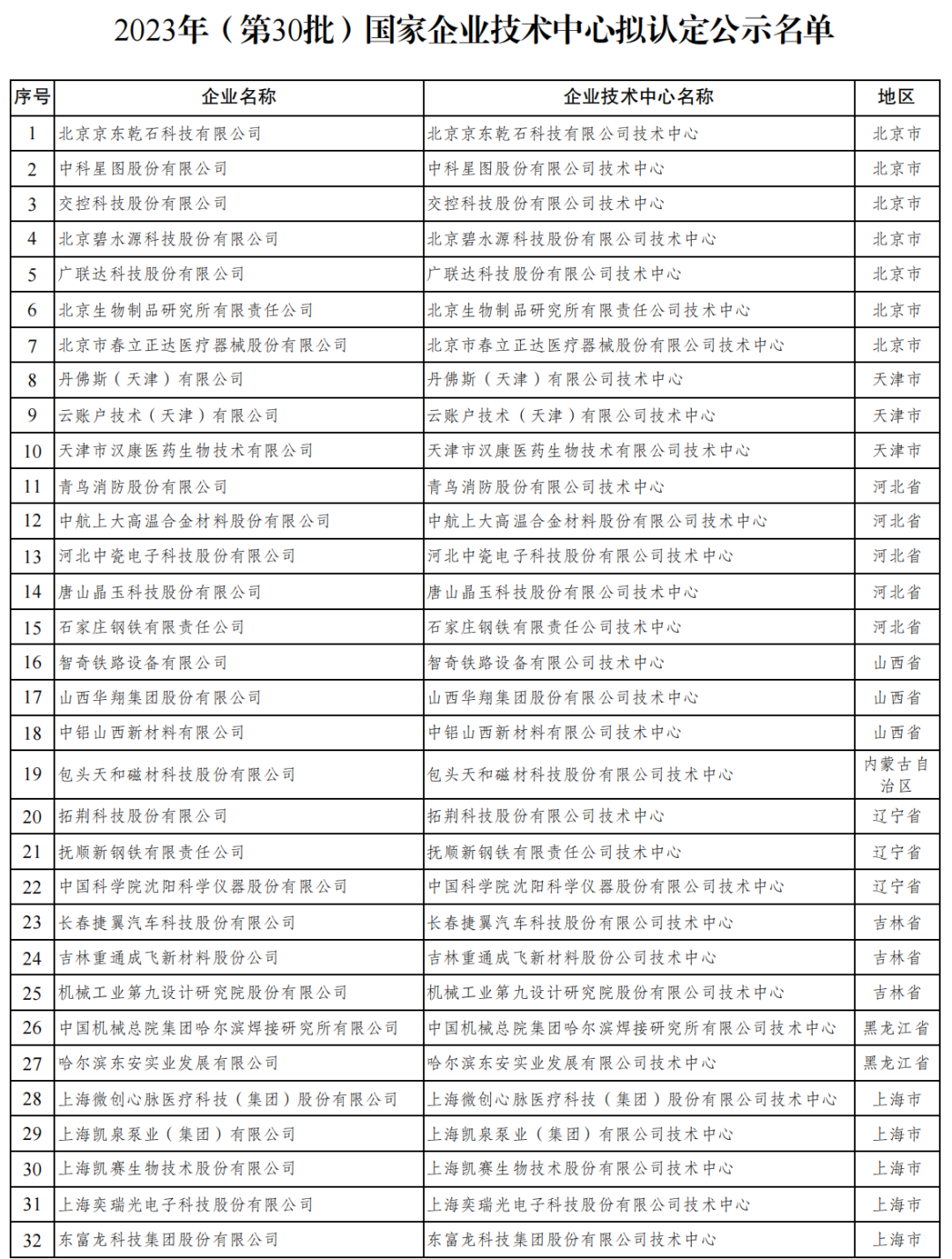 根據(jù)《國(guó)家企業(yè)技術(shù)中心認(rèn)定管理辦法》(國(guó)家發(fā)展改革委、科技部、財(cái)政部、海關(guān)總署、稅務(wù)總局2016年第34號(hào)令)和《國(guó)家發(fā)展改革委辦公廳關(guān)于組織開展2023年(第30批)國(guó)家企業(yè)技術(shù)中心認(rèn)定及國(guó)家企業(yè)技術(shù)中心評(píng)價(jià)工作的通知》(發(fā)改辦高技〔2023〕207號(hào)),在地方主管部門審核和推薦的基礎(chǔ)上,國(guó)家發(fā)展改革委創(chuàng)新和高技術(shù)發(fā)展司組織了2023年(第30批)國(guó)家企業(yè)技術(shù)中心的認(rèn)定復(fù)核工作,123家企業(yè)和6家分中心擬認(rèn)定為新一批國(guó)家企業(yè)技術(shù)中心。其中儀器儀表企業(yè)5家,分別是:丹佛斯(天津)有限公司技術(shù)中心、中國(guó)科學(xué)院沈陽(yáng)科學(xué)儀器股份有限公司技術(shù)中心、杭州炬華科技股份有限公司技術(shù)中心、煙臺(tái)艾睿光電科技股份有限公司技術(shù)中心、青島乾程科技股份有限公司技術(shù)中心。