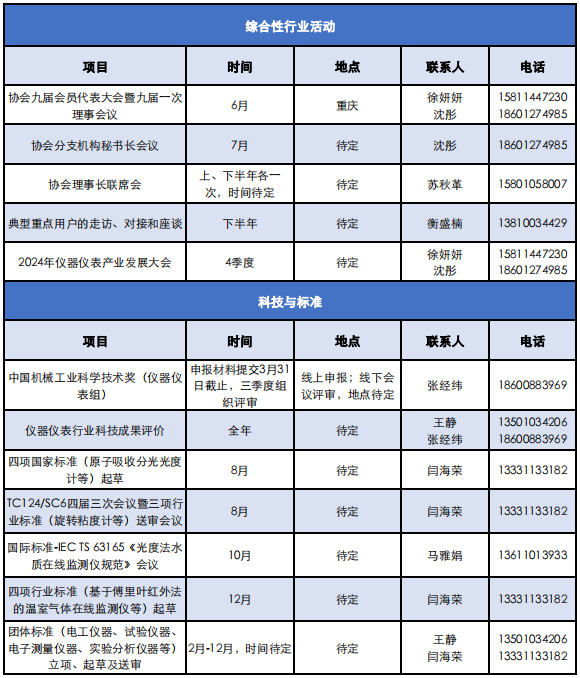 為發(fā)揮中國儀器儀表行業(yè)協(xié)會支撐政府、服務(wù)行業(yè)的橋梁作用,促進(jìn)行業(yè)間交流與合作,引導(dǎo)產(chǎn)業(yè)健康發(fā)展,推進(jìn)各項工作有序開展,更好地為協(xié)會會員企業(yè)服務(wù),特將中國儀器儀表行業(yè)協(xié)會2024年主要工作計劃整理如下,供大家了解和參與。