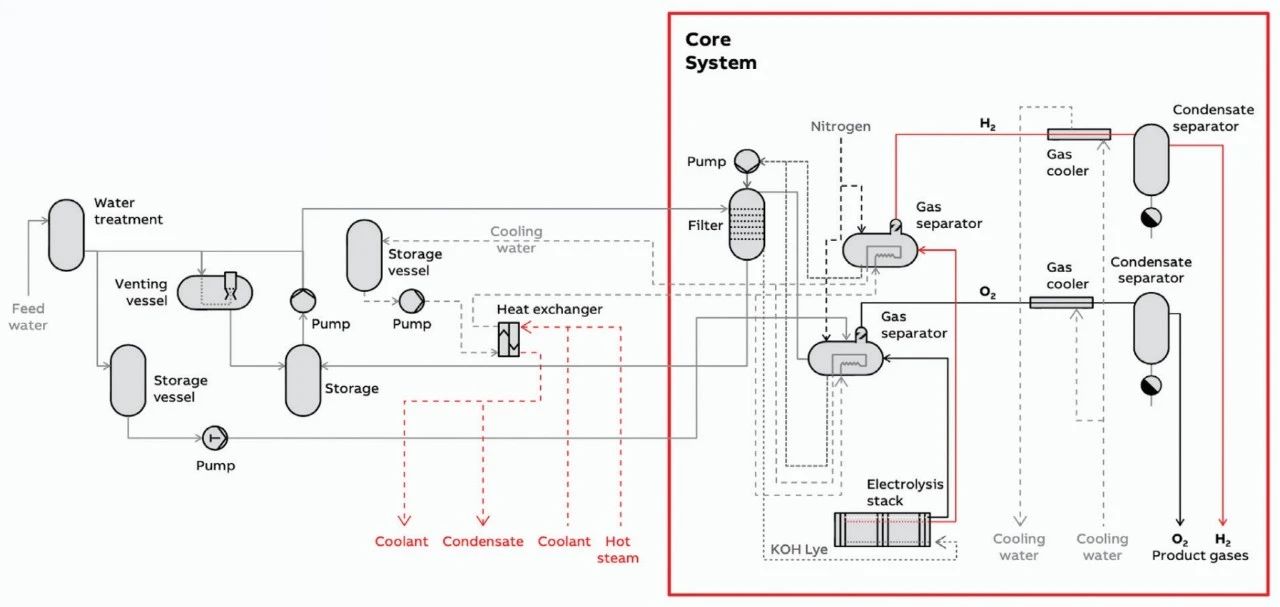 電解氫工藝的過(guò)程控制包含三個(gè)主要功能——安全操作、高效的電氫轉(zhuǎn)換和氣體純度控制。在電解過(guò)程中面臨的一個(gè)挑戰(zhàn)是,在氫氣流中積聚小濃度的氧氣以及在氧氣流中積聚氫氣的可能性。電解槽堆疊組件可能將氣體從電解槽的一側(cè)泄漏到另一側(cè)(ISO22734將其定義為故障狀態(tài))。