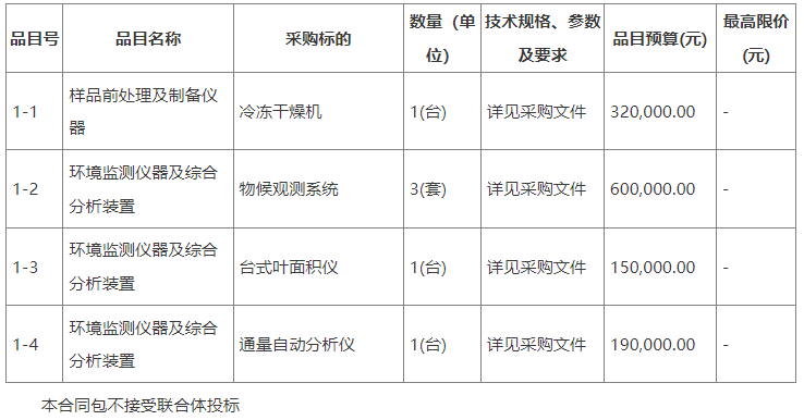 項目名稱:2024年度生態學學科建設科研儀器設備采購項目(2
