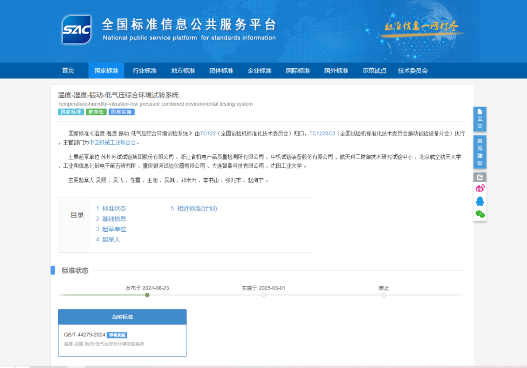 蘇試試驗作為工業(yè)產(chǎn)品環(huán)境適應(yīng)性與質(zhì)量可靠性試驗驗證及分析服務(wù)解決方案提供商,是相關(guān)國家標(biāo)準(zhǔn)、行業(yè)標(biāo)準(zhǔn)的主要起草者之一。在我國力學(xué)、氣候、綜合等試驗設(shè)備及試驗方法領(lǐng)域,集團(tuán)已累計主持或參與制定國家標(biāo)準(zhǔn)53項,行業(yè)標(biāo)準(zhǔn)15項。