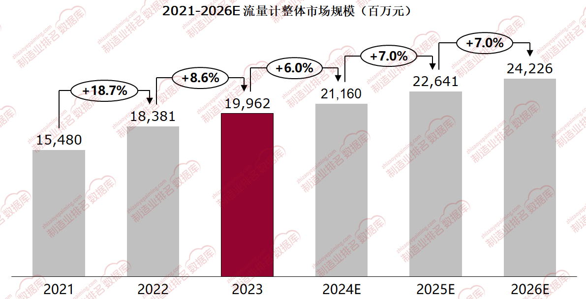 中國流量計(jì)市場在2023年的市場規(guī)模為199.62億元人民幣,顯示出中國市場的快速增長和潛力。這種增長受到多種因素的影響,包括能源需求的增長、環(huán)保意識的增強(qiáng)、技術(shù)創(chuàng)新的推動以及自動化、智能化趨勢的發(fā)展。這些因素共同作用,推動了流量計(jì)市場的需求增長。
