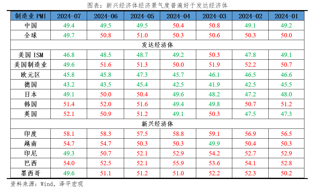 受美國(guó)持續(xù)補(bǔ)庫(kù)推動(dòng),全球制造業(yè)回暖,新興經(jīng)濟(jì)體好于多數(shù)發(fā)達(dá)經(jīng)濟(jì)體,服務(wù)業(yè)恢復(fù)好于制造業(yè)。全球制造業(yè)PMI持續(xù)位于榮枯線上,均值為50.5%;服務(wù)業(yè)為52.8%。標(biāo)普美國(guó)制造業(yè)連續(xù)6個(gè)月擴(kuò)張,均值51.3%;歐元區(qū)制造業(yè)PMI均值46.3%,法國(guó)、德國(guó)分別為45.6%43.6%。巴西、墨西哥、越南、印尼、菲律賓制造業(yè)PMI均值分別為53.4%51.3%51.0%52.6%51.3%