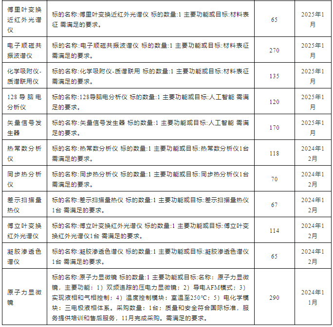 近日,廣東工業(yè)大學(xué)發(fā)布18項儀器設(shè)備采購意向,預(yù)算總額達8457萬元,涉及電感耦合等離子發(fā)射光譜儀、八通道甚低頻分布式聲波解調(diào)儀、低相噪光學(xué)頻率梳、電子順磁共振波譜儀、多角度粒度及高靈敏Zeta電位分析儀、拉曼光譜儀等,預(yù)計采購時間為2024年11月~2025年1月。