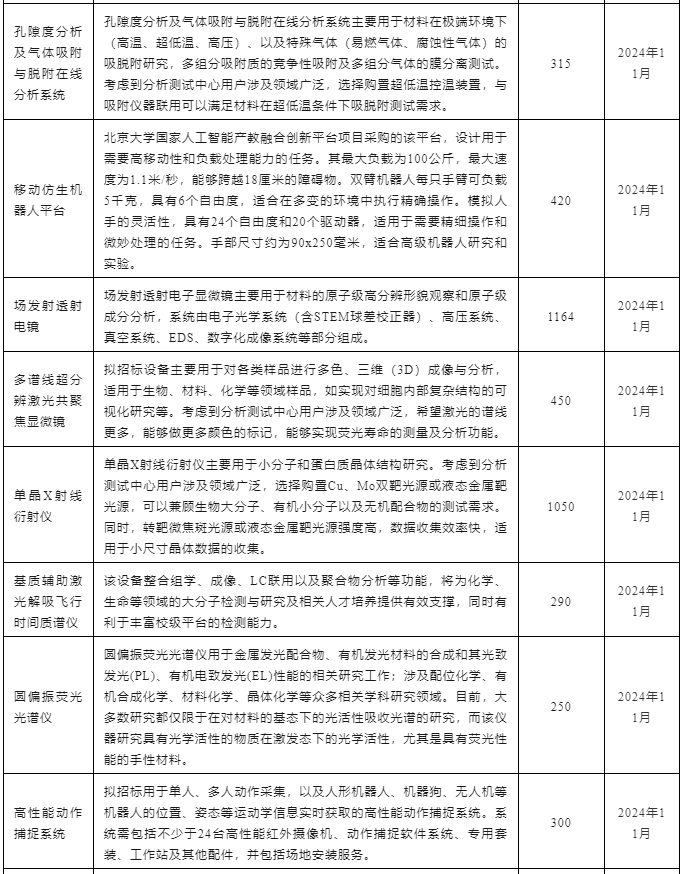 北京大學2024年11月儀器設備采購意向匯總表