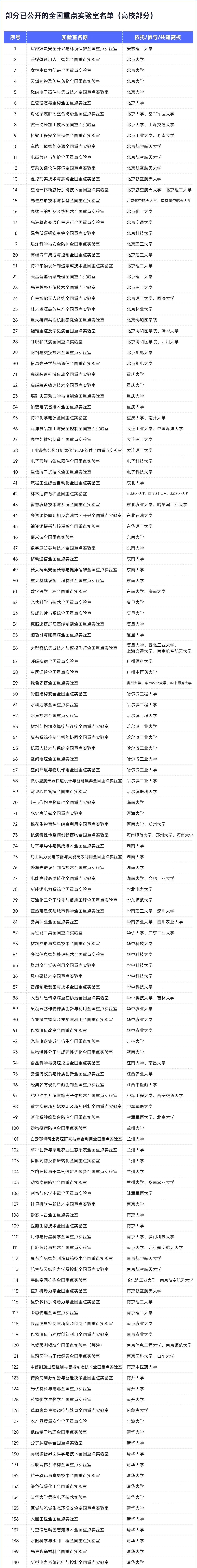 高校是科技創(chuàng)新的生力軍,是全國重點實驗室的重要依托單位和建設(shè)單位。總結(jié)了高校牽頭或參與建設(shè)的全國重點實驗室。截至發(fā)稿,公開渠道可知的全國重點實驗室超250家。具體名單如下: