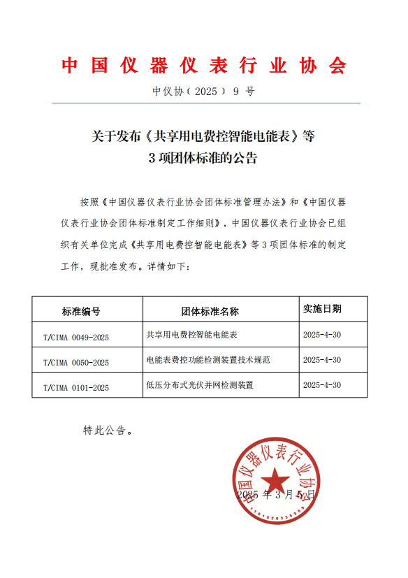 關(guān)于發(fā)布《共享用電費(fèi)控智能電能表》等3項(xiàng)團(tuán)體標(biāo)準(zhǔn)的