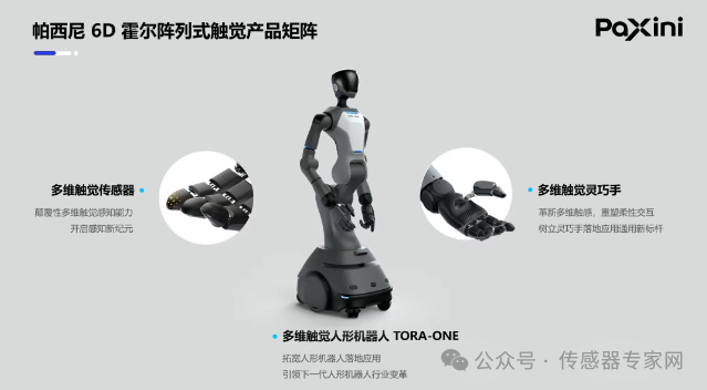 帕西尼核心團隊源自日本早稻田大學菅野機器人實驗室,率先發布了全球首款搭載HAPTA異構多核陣列軟硬件架構(Hetero-ArrayProbing Tactile Architecture)ITPU多維觸覺處理單元(Intelligent Tactile Processing Unit),以及基于觸覺與視覺多模態感知模型和前沿Al算法的人形機器人TORA-ONE和觸覺靈巧手DexH系列。帕西尼推出的6D霍爾陣列式觸覺傳感器打破了海外技術壟斷,成為機器人“感知覺醒”關鍵技術的代表之一。