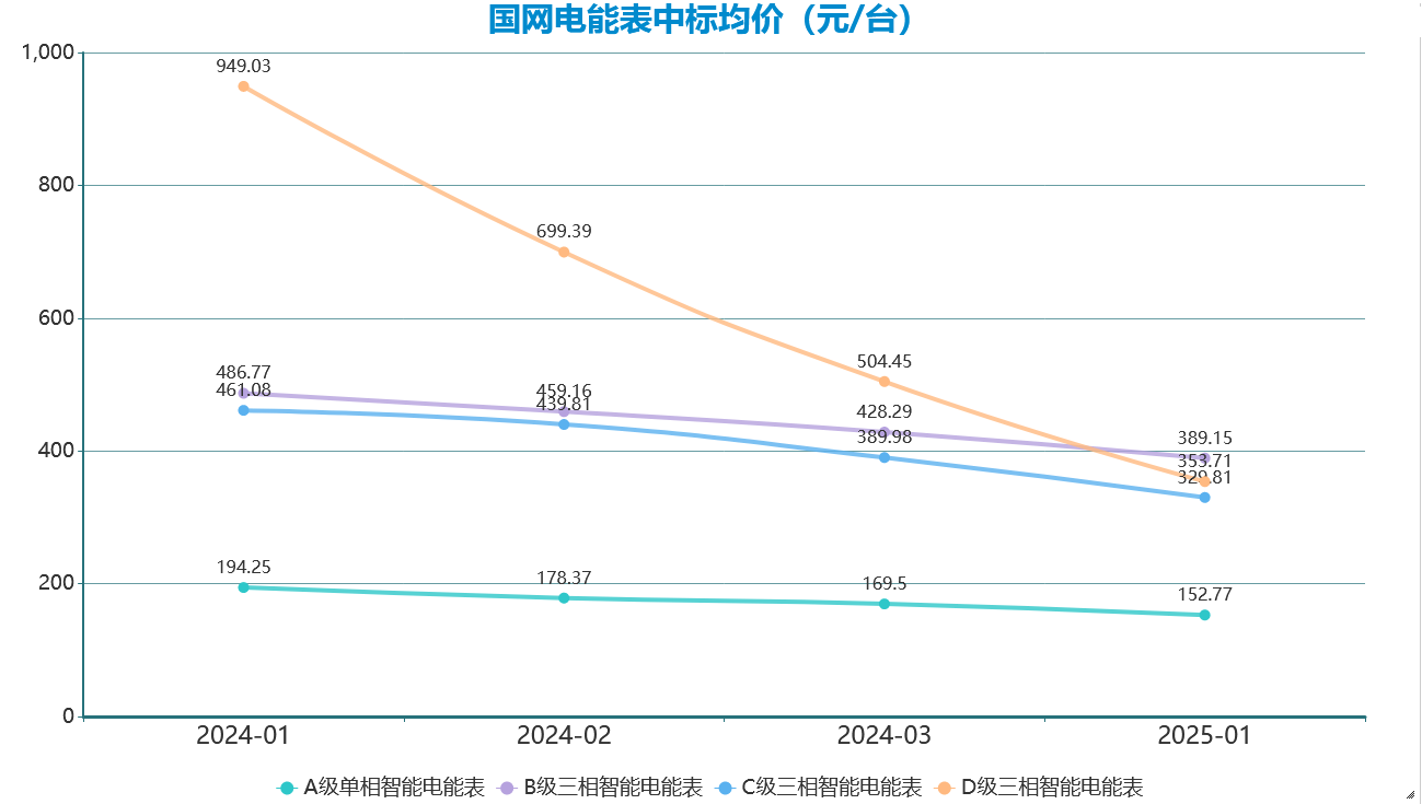 值得關注的是,本批次電能表中標價格仍持續(xù)下行: