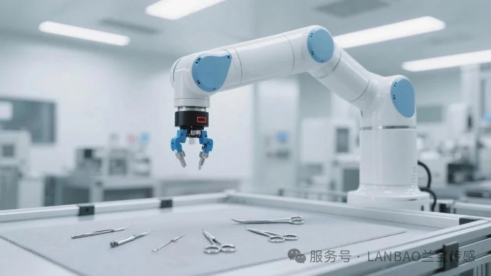 在醫(yī)療器械生產車間,精密手術器械的抓取堪稱 “精細活”。傳統(tǒng)機械臂若缺乏精準的位置感知,極易出現抓取偏移或刮傷器械表面的情況。而搭載了蘭寶激光位移傳感器的合作機器人機械臂,能通過細小的 0.12mm 直徑光斑,精確識別器械的三維坐標和擺放角度。即使是帶有纖細鉗口的手術剪或微型縫合針,傳感器也能清晰捕捉其位置信息,引導機械臂實現毫米級的精準抓取。