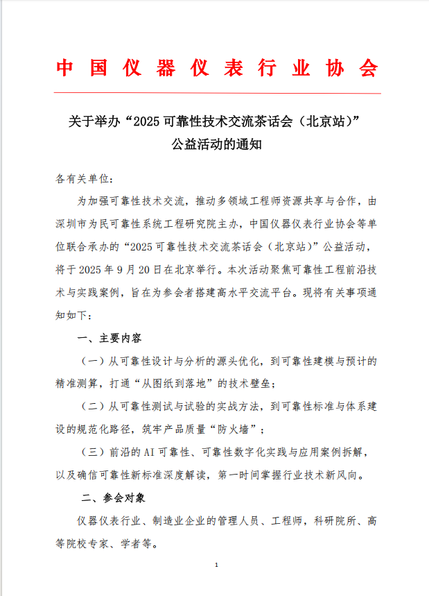 ” 公益活動的通知關于舉辦“2025 可靠性技術交流茶話會(北京站)”
