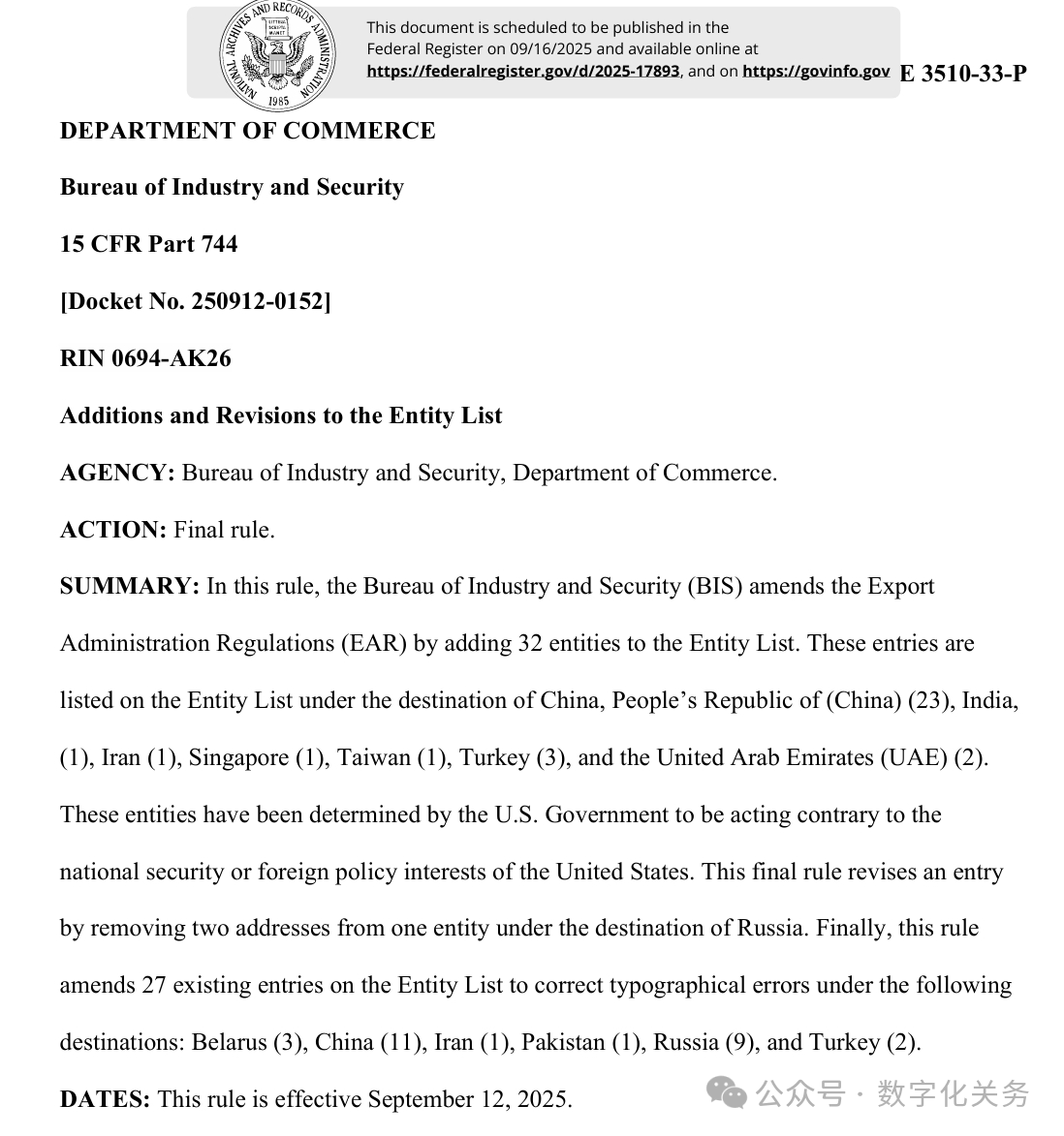 發布時間:2025-9-15     來源:數字化關務    編輯:衡盛楠    審核:張經緯 王靜