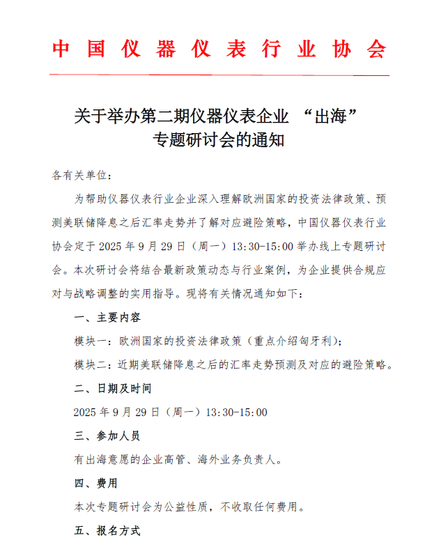 關于舉辦第二期儀器儀表企業“出海”專題研討會的通知