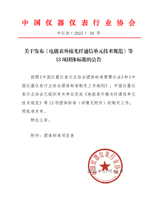 關(guān)于發(fā)布《電能表外接光纖通信單元技術(shù)規(guī)范》等13項(xiàng)