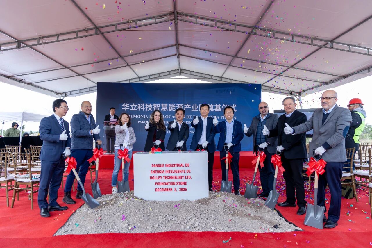 當(dāng)?shù)貢r(shí)間2025年12月2日,華立科技墨西哥智慧能源產(chǎn)業(yè)園奠基儀式在新萊昂州蒙特雷華富山工業(yè)園順利舉行。華立科技董事長(zhǎng)鐘祥剛出席并致辭,新萊昂州外商投資部主任Regina Sada Elizondo,來(lái)自CFE北部大區(qū)的代表,華立科技海外事業(yè)部總經(jīng)理黃云鵬、海外事業(yè)部市場(chǎng)總監(jiān)陳建鋒,以及華立海外和承建方代表共同參加此次奠基儀式。
