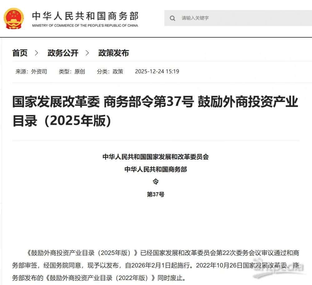 近日,經(jīng)國務(wù)院同意,國家發(fā)展改革委、商務(wù)部全文發(fā)布《鼓勵(lì)外商投資產(chǎn)業(yè)目錄(2025年版)》(以下簡稱《鼓勵(lì)目錄》),自202621日起施行。