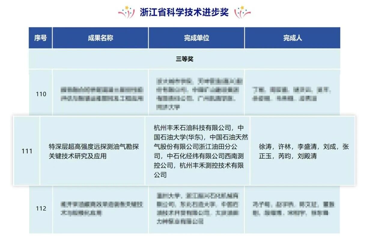 神開豐禾特深層超高強度遠探測項目榮獲浙江省科學技術
