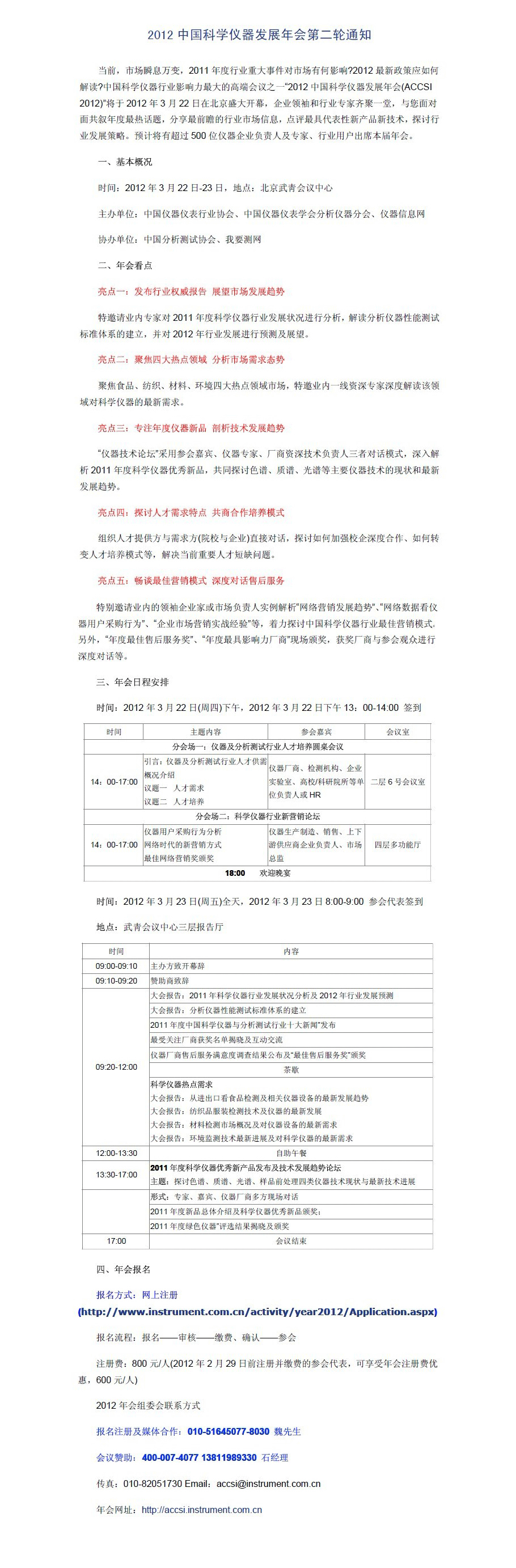 2012中國(guó)科學(xué)儀器發(fā)展年會(huì)第二輪通知
