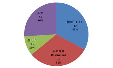 我國工業過程控制變送器市場過去幾年發展較快,但整體上國產化率和國產供應檔次低,高端供給基本上由橫河(EJA)、羅斯蒙特(Rosemount)、西門子等國外公司把持,其中排名前兩位的橫河(EJA)和羅斯蒙特(Rosemount)就合計占據了64%的市場份額,本土廠商市場份額很低。